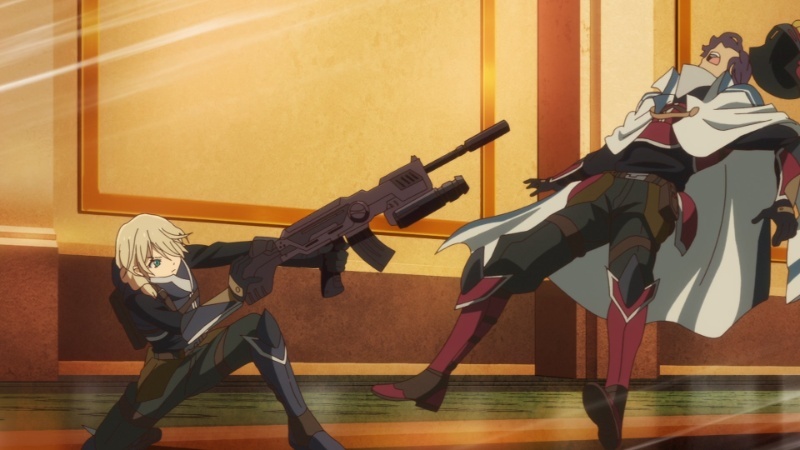 Was für eine Folge! Es folgt Wendung auf Wendung und keine Sekunde wird es langweilig. Lavie muss sich in ihre neue Rolle erst eingewöhnen, doch schon jetzt erfährt sie Liebe und Bewunderung von Jägern und Bevölkerung gleichermaßen. Ihre Rede ist schlicht aber doch effektiv, da sie sich wirklich auf das Wesentliche beschränkt. Glarks großer Masterplan, nicht nur das Kaiserreich zu besiegen, sondern eines Tages den ganzen Kontinent zu beherrschen und somit jeden Krieg zu eliminieren, ist ziemlich ambitioniert. Eigentlich kann er schon froh sein, wenn er es schafft, dass North Ambria nicht geschluckt wird. Besonders freue ich mich aber nicht nur über die Erwähnung von Liberl, sondern auch das kurze Wiedersehen mit Estelle und ihren Freunden (die Helden der ersten Trilogie The Legend of Heroes: Trails in the Sky), das The Legend of Heroes: Trails of Cold Steel – Northern War in dieser Folge einschiebt.