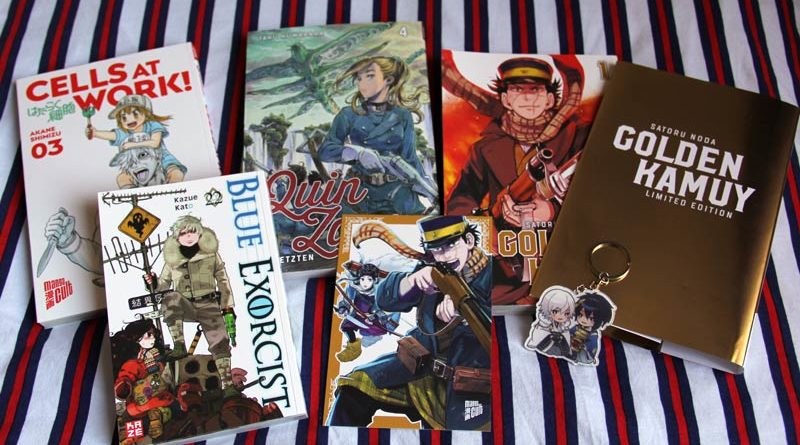 Ich selbst bin dieses Jahr nicht zur Animagic, da es mit meinem Geburtstag kollidiert ist. Eine liebe Freundin hat sich aber extra für mich durch die Massen gekämpft, um ein Exemplar der limitierten Edition von Golden Kamuy zu sichern. Auf diesen Weg noch mal vielen Dank für denen Einsatz! Im August gab es aber auch noch weitere Mangas von Manga Cult: ein weiterer Einsatz der fleißigen Zellen von Cells at Work und der Drachenjäger von Quin Zaza – Die letzten Drachenfänger. Ein paar Probleme hatte ich mit dem neusten Band von Blue Exorcist. Irgendwie konnte ich diesen in keinem Buchladen in der Umgebung erwerben, weswegen ich ihn dann doch bestellen musste. Jedoch stand bei Amazon dann ein bis zwei Wochen Lieferzeit. So lange hat es am Ende zum Glück nicht gedauert! Per Post kam dann doch ein ganz lieber Geburtstagsgruß einer Freundin, die weiß dass meine zwei Lieblingsschwerter aus Touken Ranbu Mikazuki und Tsurumaru sind. Sie hat neben einer wirklich süßen Karte, einen Anhänger mit den beiden beigelegt. Das war wirklich mal schöne Post im Briefkasten.