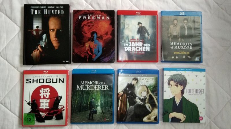Ich durfte mir wie jedes Jahr meine Geschenke selbst aussuchen. Daher ließ ich mir zu Weihnachten ein paar Wünsche von meiner Familie erfüllen. Der Film The Hunted – Der Gejagte stand seit Ewigkeiten auf meiner Liste. Ich kannte ihn schon aus dem Fernsehen und suchte vor paar Jahren nach einer Disc-Veröffentlichung, aber es gab schlichtweg keine. Dann hatte ich eine lange Zeit nicht mitbekommen, dass ein Mediabook erschienen ist, welches eine DVD und eine Blu-ray beinhaltet. Da der Film anscheinend immer noch auf dem Index steht, wird er als “ungeprüft“ geführt, wodurch er kein FSK-Logo besitzt. Ein weiterer Wunsch geht für mich mit dem Steelbook von Crying Freeman in Erfüllung. Hierbei handelt es sich um die Verfilmung des gleichnamigen Mangas. Der Film stand früher ebenfalls auf dem Index, aber inzwischen kriegt man ihn uncut und mit einer FSK 16. Des Weiteren kam die Blu-ray von Im Jahr des Drachen hinzu. Den Titel kenne ich ebenfalls aus dem Fernsehen. Hierin spielt John Lone mit, der zu meinen Lieblingsschauspielern gehört und der auch in The Hunted – Der Gejagte zu sehen ist. Ein weiterer Wunschtitel kommt mit Memories of Murder hinzu, den ich ebenfalls vor langer Zeit im TV gesehen habe und der auf wahren Begebenheiten basiert. Es war gleichzeitig mein erster Film des Regisseurs Bong Joon-Ho, bis ich später Parasite geschaut habe. Als nächstes kam die Serie Shogun hinzu, die ich schon immer mal sehen wollte. Was mich aber ärgert, dass es kein ablösbares FSK-Logo gibt. Ich hasse diese Dinger auf dem Cover. Ein sehr spontaner Titel ist Memoir of a Murderer, der mich neugierig gemacht hat. Und ich muss sagen, der Film gefällt mir und daher bereue ich diese spontane Entscheidung nicht. Zu den ganzen Filmen gesellen sich zwei Anime-Serien hinzu, nämlich Gosick als Komplettbox und der zweite Teil von Fruits Basket Staffel 2. Bei Gosick habe ich keine Lust mehr auf einen deutschen Release zu warten und die Version aus Amerika ist zudem echt günstig. Bei Fruits Basket bleibe ich weiterhin bei der Ausgabe aus England, da mich die deutsche Veröffentlichung nicht anspricht. Zudem mag ich keine DVD/Blu-ray-Kombis, wie sie der Publisher Peppermint Anime anbietet.