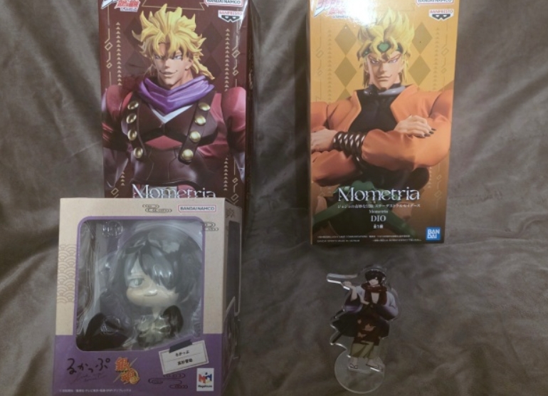 Harry Potter darf nicht fehlen. Da gab es wieder zwei neue Lego-Sets von meinem Freund zu Weihnachten, einmal von der Hausbanner-Reihe den Slytherin-Gemeinschaftsraum und dann noch das Klassenzimmer für Wahrsagerei. Weiterhin habe ich mir noch einen Schlüsselanhänger von Slytherin geholt und eine passende schwarz-grüne Tasche von der Marke Banned, um diesen dann daran zu hängen. Zum Schluss gab es auf der Comic-Con noch zwei Figuren von Dio aus JoJo’s Bizarre Adventure, die ich schon eine Weile gesucht habe und das noch zu einem guten Preis. Direkt aus Japan habe ich mir die Look-Up-Figur von Takasugi aus Gintama bestellt und zum Abrunden habe ich noch einen Acryl-Standee von ihm.
