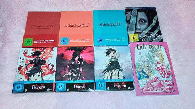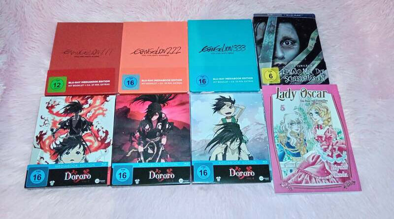 Ich hatte mich Ende November schon sehr auf die Black Week gefreut, da es da immer auf viele Anime-Blu-rays gute Angebote gibt. Ich habe die Chance genutzt, um viele meiner Wünsche von der Wunschliste zu streichen. Im Dezember sind dann nach und nach die ganzen Blu-rays bei mir eingetrudelt. Den Anfang machten die ersten drei Filme von Evangelion. Diese kommen in schlichten Mediabooks und zahlreichen Extras auf den Discs. Tatsächlich gefällt mir das neue Design ziemlich gut, da ich die früheren Veröffentlichungen der Filme nicht so schön finde. Beim vierten Film warte ich noch ein besseres Angebot ab. Ein Highlight ist für mich das Steelbook von Edward mit den Scherenhänden. Da es sich bei dem Steelbook um eine recht frische Veröffentlichung handelt, gehörte es nicht zu den Black Week Deals, aber es war dennoch ein Pflichtkauf für mich, da die Gefahr groß ist, dass es später nicht mehr erhältlich ist. Es ist eine Schande, dass ich erst so spät die Volumes 2 bis 4 von Dororo geholt habe, aber irgendwie ist es untergegangen. Aber so ganz schlecht war es für mich nicht, da es bei den Volumes eine starke Preissenkung gab. Der Sparfuchs in mir, hat sich sehr gefreut. Des Weiteren geht es mit dem Manga von Lady Oscar: Die Rose von Versailles weiter. Der fünfte Band ist nämlich bei mir eingezogen.