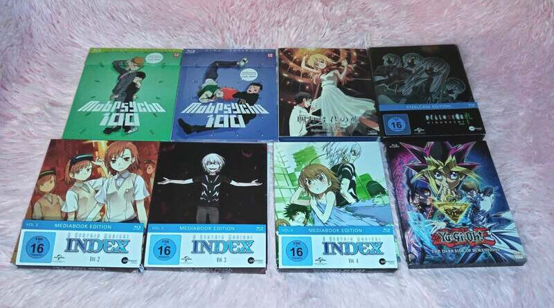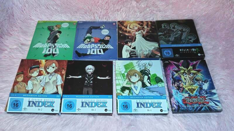 Meine Ausbeute der Black Week geht auch hier weiter. Und die Freude ist groß, denn die Gesamtausgabe von Mob Psycho 100 darf ich nun mein Eigen nennen. Wobei das zwar als Gesamtausgabe betitelt wird, aber in Wirklichkeit ein Bundle der zwei Volumes der ersten Staffel ist. Bei der Gesamtausgabe konnte ich auch extrem sparen und zudem sind die Volumes als schicke Mediabooks veröffentlicht worden. Als nächstes kam die Komplettbox von Shigatsu wa Kimi no Uso: Sekunden in Moll hinzu. Die ganze Serie bekommt man inzwischen für den Preis eines Volume oder gar weniger. Die Erstveröffentlichung hatte damals noch vier Volumes, was ziemlich kostenintensiv war. Wer die Serie also noch nicht hat, sollte spätestens jetzt zuschlagen. Um meine Sammlung von Higurashi no Naku Koro Ni zu vervollständigen, ist auch die OVA-Sammlung bei mir gelandet, die gleichzeitig die dritte Staffel der Serie darstellt. Ich finde die OVAs zwar teilweise wegen des Fanservices nicht so besonders überzeugend, aber zum Schnäppchenpreis war es der beste Zeitpunkt um zuzugreifen. Somit habe ich die alte Serie von Higurashi komplett im Regal. Es war immerhin seit Jahren das einzige Volume, das mir noch gefehlt hatte. Ein weiterer Schnapper waren die Volumes 2 bis 4 von A Certain Magical Index. Ich bin so überglücklich, dass ich endlich meinen Sammelschuber vollständig habe. Die Volumes waren für weniger als die Hälfte des Normalpreises zu haben. Wie schon das erste Volume, kommen auch die anderen als Mediabooks mit Extras. Spontan ist noch der Film Yu-Gi-Oh!: The Dark Side of Dimensions hinzugekommen. Leider fehlt mir immer noch die Gesamtbox der Serie.