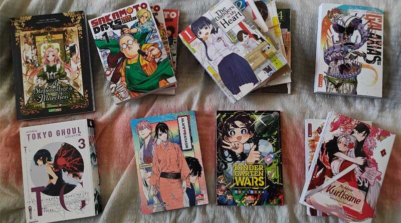 Es gab aber noch mehr Mangas und Webtoons für mich, ein paar davon sind ganz neue Serien für mich. A Stepmother’s Märchen – Eine zweite Chance für meine Familie ist so eine Serie. Auch hier kenne ich die Serie schon in digitaler Form und zeichnerisch hat sie mich von Anfang überzeugt, aber auch die Story ist etwas ganz Besonderes. Papertoons hat auch hier wieder eine super Lizenz zu uns gebracht. Sakamoto Days ist eine Serie, die ich zwar angefangen habe zu lesen, aber sie hat mich erst so richtig gefeseslt, als die Anime-Adaption dazu erschien. Als dann bei meinem lokalen Thalia die ersten drei Bände verfügbar war, habe ich einfach zugegriffen. Die Serie ist in Japan auch bald beendet, das heißt, die Länge wird überschaubar bleiben. The Dangers in My Heart ist eine Serie, die mir immer wieder vorgeschlagen wurde und zur Weichnachtszeit habe ich mir die Serie einfach gegönnt. Bestellt habe ich alle, die es gibt, auch weil ich von der Arbeit vom Dokico-Verlag sehr überzeugt bin. Als eine Serie, die bisher noch eher als Geheimtipp gilt, ist jetzt Galaxias auch im Print mit Band 1 bei Altraverse erschienen. Richtig gute Serie, die mir diese Vibes der klassischen Shounen-Serien gibt, aber mit einem moderneren Anstrich und sehr coolem Kräftesystem. Und ich müsste wohl lügen, wenn nicht eine gewisse Apothekerin Schuld ist, dass ich mir die ersten Bände von Die falsche Kurtisane geholt habe. Fortführungen gab es mit Tokyo Ghoul Gigantik 3, Kindergarten WARS Band 7 und Akane-banashi Band 6.