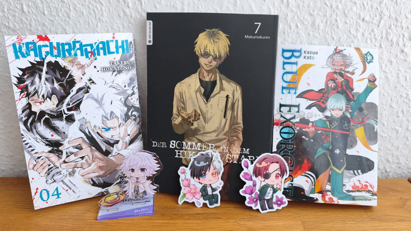 Der Dezember fiel eher geekisch mauer aus, was einfach daran lag, dass ich viel auf Reisen war und daher meiner anderen Leidenschaft den Vorrang gab. Nichtsdestotrotz wanderten wieder einige neue Manga-Bände in den Einkaufskorb. Am meisten freute ich mich über den vierten Band von Kagurabachi, denn die Story ist gerade mega spannend, doch auch auf Band 32 von Blue Excorcist. Wir nähern uns schließlich mit großen Schritten dem Finale! Band 7 von Der Sommer, in dem Hikaru starb übersah ich im Laden total und erst bei einer dritten Runde am Regal fiel er mir ins Auge. Kein Wunder, waren die anderen Cover doch immer in so hellen Farben, geht das Schwarz in eine komplett andere Richtung. Eine große Überraschung machte mir ein Kumpel, der die Stuttgarter Comic Con besuchte. Er fand da einen kleinen Merlin (Fate/Grand Order)-Aufsteller, welchen er mir einfach kaufte, denn er wusste, dass ich mich sehr darüber freuen würde. Von dem Wind Breaker-Sticker und Postkartenset, dass er sich kaufte, überließ er mir kleinen Sticker von Haruka Sakura und Hayato Suou. Ist das lieb von ihm!