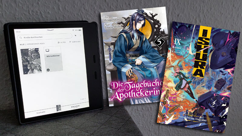 Für meinen Oreki – mein E-Book-Reader – gab es neues Futter in Form der fünften Light Novel Der Tagebücher der Apothekerin. Zum erst mal ist nur Jinshi auf dem Cover und das mit einem Blick, der mich schon sehr neugierig machte. Immerhin überholten wir mit der Handlung den Inhalt der zweiten Anime-Staffel, es lag also Neuland vor mir. Die Preise für die Ishura-Bände ging auch etwas nach unten. Ich schlug daher zu. Band 9 konnte ich sofort herunterladen und Band 10 bekomme ich dann für den günstigeren Preis am Erscheinungstermin im Januar, wobei wir dann mit Band 10 auf dem aktuellen japanischen Stand auch sind.