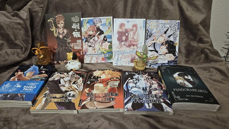 Der erste Monat des Jahres war ganz solide und bot einige neue Titel wie den Manhua Ihr Letztes Mahl, Aus der Zaubergilde verstoßen, Definitely Love, Die tausendjährige Liebe des Dämons und die sehr schicke Neuausgabe von Pandora Hearts, die ich eigentlich nicht vor hatte zu kaufen, aber die Aufmachung gefällt mir einfach zu gut. Mein Freund und ich haben weiterhin mit Shangri-La Frontier eine gemeinsame Serie begonnen, da uns beiden die Anime-Serie so gut gefallen hat, welche wir erst kürzlich aus Langeweile angefangen haben. Ein bisschen Merchandise kam auch noch im Januar dazu und zwar zwei Pokémon-Figürchen, die aus einer Blind Box stammen. Die dicke Katze ist ebenso aus einer Blind Box. Für Playstation 5 habe ich mir zudem noch Elden Ring als digitale Version gekauft.