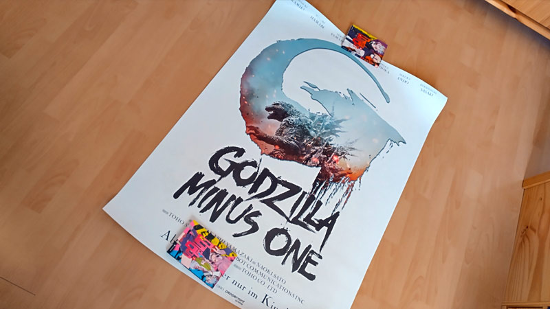 Über X (immer noch besser bekannt als Twitter) veranstaltete Peppermint Anime ein Gewinnspiel zu Godzilla Minus One. Zu gewinnen gab es das Kinoplakat in verschiedenen Größen. Da mir dieses so gut gefällt, probierte ich mein bescheidenes Glück. Keine Ahnung, ob die Kaiju-Götter mit mir gnädig waren, weil ich brav mein Geld an der Kinokasse ließ, jedenfalls gehörte ich zu den Gewinnern. Da ich aktuell aber auf der Suche nach einer neuen Wohnung bin, muss das Poster erst einmal wieder eingerollt werden.
