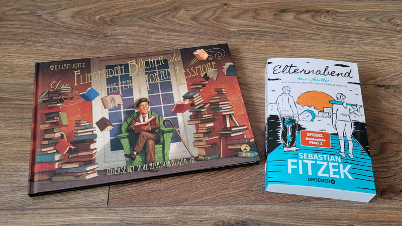 Obwohl ich beruflich jeden Tag unzählige Bücher um mich herum habe, habe ich noch nie einen Titel von Sebastian Fitzek gelesen, obwohl ich die Möglichkeit habe, diese aus den Regalen zu nehmen. Im Januar hat mich meine Verwandtschaft mit einem nachträglichen Weihnachtsgeschenk überrascht. Das Buch Elternabend: Kein Thriller (Auch wenn der Titel nach Horror klingt!). Die Beschreibung klingt interessant, daher lasse ich mich überraschen. The fantastic flying books of Mr. Morris Lessmore gewann 2012 den Oscar in der Kategorie „Bester Kurzfilm“. Das Buch Die fliegenden Bücher des Mister Morris Lessmore spiegelt diese Geschichte in wunderschönen Bildern mit einer bewegenden Geschichte wieder.