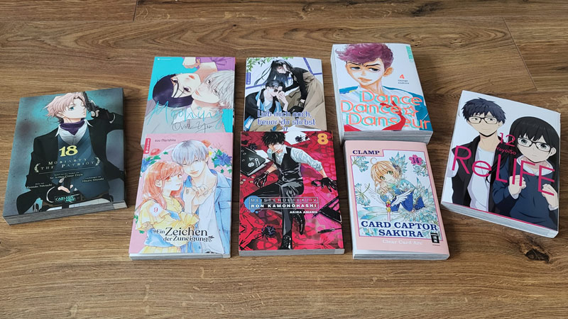 Das Jahr 2024 darf auch mit viel neuem Lesestoff beginnen. Hoffentlich kann alles die Erwartungen erfüllen. Lange gewartet und endlich geht es weiter. Dieser Satz kann nur auf zwei Reihen zutreffen: Moriarty the Patriot und Cardcaptor Sakura: Clear Card Arc. Bei Ein Zeichen der Zuneigung wird deutlich, das der Manga aufs Finale hinläuft. Mooning over you überrascht mich von Band zu Band mehr und ein Glücksgriff war definitiv Dance Dance Danseur. Schon die Serie hat mich beeindruckt und auch der Manga schafft es, diese Ballettelemente so authentisch aufs Papier zu bringen. Die Sammlung vervollständigen ReLIFE, Lieb mich noch bevor du stirbst! und Meisterdetektiv Ron Kaminohashi.