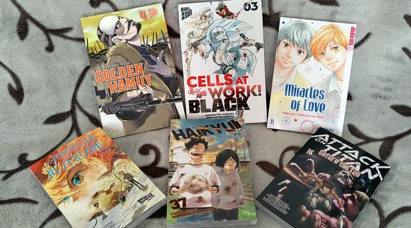 Keine Leipziger Buchmesse und Manga-Comic-Con. Nach dieser Ankündigung war natürlich erst einmal die Stimmung im Keller. Frustkauf musste daher sein! Bei den Mangas waren es aber nur die üblichen Verdächtigen. Mit Miracles of Love – Nimm dein Schicksal in die Hand Band 11 und Attack on Titan – Before the Fall Band 16 sind die vorletzten Bände dieser Reihen eingekauft. Bei Haikyu!! darf ich mich nun auch in mehr Geduld üben, denn die Bände erscheinen in Englischen nun auch nicht mehr jeden Monat. Der neue hat aber schon mal ein sehr niedliches Cover, das ich nicht gleich an den nächsten Band denken muss. Ansonsten gab es noch den neusten Streich von Cells at Work! BLACK, Golden Kamuy und The Promised Neverland.
