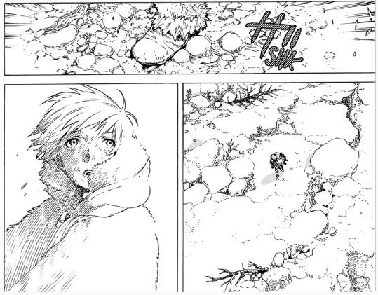 „Es“ muss das Leben und die zugehörigen Emotionen erst noch entdecken. Sein Schöpfer, der Erzähler, erscheint als interessierter, aber unparteiischer Beobachter. Die Geschehnisse wirken weitgehend ungefiltert natürlich und zeigen die Welt wie sie ist, aus verschiedensten Perspektiven mit abwechslungsreichen Panellayouts und Landschaftskontrasten. Visuell ist To Your Eternity beeindruckend, ohne Frage – aber der Stil ist mehr von der Sorte Natürlichkeit ohne Beschönigungen. Und die nackte Natur ist widrig und grausam. Sie bietet dennoch Vielfalt und interessante Schicksale, die das Leben in ihr wertig machen. Damit erkennt man wieder die Handschrift von Yoshitoki Oima, denn diese positive Nachricht, platziert in einer Welt gespickt mit Widrigkeiten, bringt auch das Vorwerk A Silent Voice rüber.
