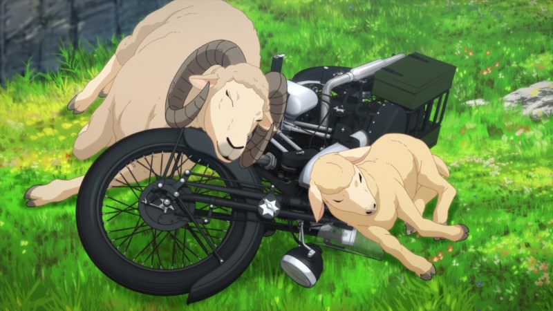 In der Abschlussfolge 12 der Serie Kino’s Journey -the Beautiful World- the Animated Series wird es noch einmal ernst: Kino und Hermes werden von einer Herde kampfwütiger Schafe angegriffen!