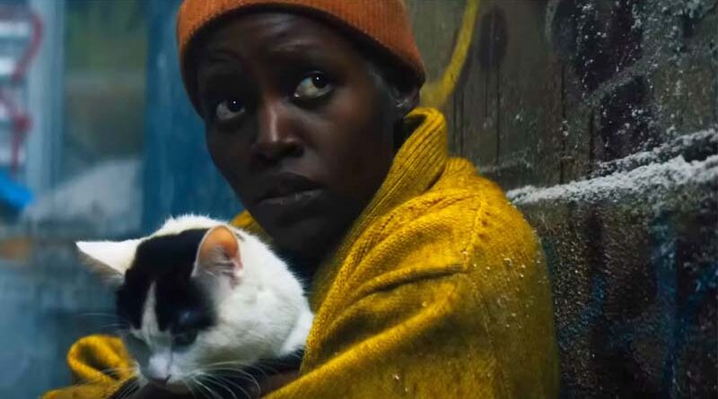 Mit Samira tritt eine Figur ins Geschehen, die keine völlig leere Leinwand ist, die erst noch bemalt werden will. Kurz vor dem Tod stehend, bringt sie Emotionen und Haltung mit, die man nicht in jedem Menschen ohne weiteres findet und die der Tonalität einen melancholischen Anstrich verpassen. Das Beschützen ihrer Katze Frodo wird ebenfalls zu einem zentralen Thema, denn gerade Tiere werden in Ausnahmesituationen viel zu oft vergessen, weil der Blick völlig auf uns Menschen gerichtet ist. Nebenbei bemerkt entwickelt Frodo sich zu einem echten Szenendieb, wobei man die Logikbrille nicht allzu häufig aufsetzen darf. Samira ist ein toller Charakter! Nicht nur, dass Nyong’o sie fantastisch darstellt und ihr eine wahnsinnige Präsenz verleiht. Samira entwickelt mit ihren letzten Träumen eine eigene Überlebensstrategie. Gemeinsam mit dem (etwas farblosen) Eric entsteht somit eine ganz neue Vision innerhalb der schweren Katastrophe. Die Chemie zwischen Lupita Nyong’o und Joseph Quinn ist erstaunlich. Aber nicht die Chemie eines füreinander bestimmten Paares, sondern zweier Menschen, die sich auf psychologischer Ebene gegenseitig brauchen. Mit Djimon Hounsou gibt es für Fans eine erfreuliche, wenngleich kurze Brücke zum zweiten Teil.