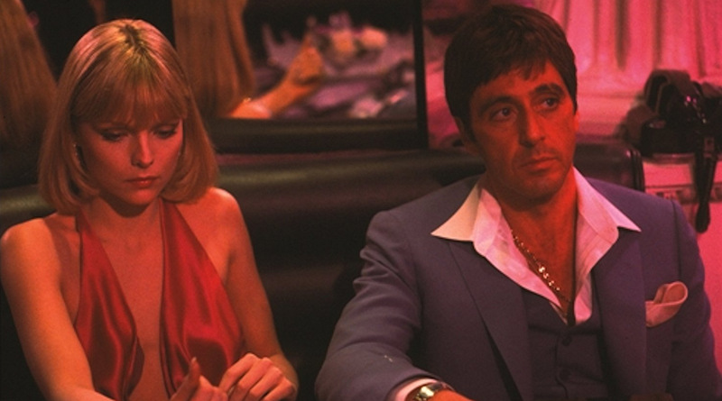 So zerstört er alles um sich herum ohne es zu merken. Sogar Manny vertraut er nicht mehr, was auch hier zum Bruch führt. Sonst stellt sich Tony als ein ziemlicher Macho hervor und Schimpfwörter gehören zu ihm, wie der Kokain. Er ist ein Exempel dafür, dass Geld, Macht, Drogen und Frauen irgendwann zu Kopf steigen. Hinzu steigt die Angst und das Misstrauen gegenüber seinen eigenen Leuten. Was nicht verwunderlich ist, wenn Tony in solchen krumme Geschäfte verwickelt ist. Im Film stechen Tony und Manny am ehsten hervor, da die Freundschaft der beiden Männer eine nicht unwichtige Rolle spielt. Michelle Pfeiffer (Gefährliche Liebschaften), die damals noch eine unbekannte Schauspielerin war, durfte die schöne Elvira spielen. Allerdings fällt ihre Rolle eher schwach aus. Denn wirklich nennenswerte Funktionen, außer Tony die Meinung sagen, übernimmt sie nicht. Sie ist nur die Ehefrau, die Koks nimmt. Die Darstellung der Frau, an der Seite eines Mafiosi fällt in solcher Art von Filmen meist lasch aus. Letztendlich ist der Film ganz und gar auf Al Pacino zugeschnitten, der auch eine Glanzleistung abliefert. Durch den Soundtrack von Giorgio Moroder (12 Uhr nachts – Midnight Express), der auch für einen Golden Globe nominiert wurde, wurde der Film auch vollkommen.