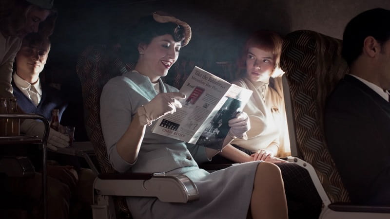 Was den Cast betrifft, bleibt die Aufmerksamkeit absolut gerne bei der Stange. Die Figuren sind toll geschrieben und ihre Entwicklung spannend zu verfolgen. Und wie schaut’s mit dem Schachspiel aus? Hier kommt natürlich als allererstes der Soundtrack von Carlos Rafael Rivera (Godless) ins Spiel. Rivera verpasst dem Damengambit ein Main Theme, als würde gleich die Black Pearl um die Ecke geschippert kommen und unterlegt die Schachpartien mit spannungsvollen Akkordprogressionen, die nicht zu aufdringlich sind, sich aber dennoch stets nach oben schrauben und den Matches ein Momentum der mild aufreibenden Dramatik verleihen. Das, die Kameraperspektive und die wahrhaftige Besorgnis, die man für Beth und die anderen Spieler entwickelt, vermitteln die Obsession der Schachspieler und die zerebrale Spannung, die zukünftige Schachmeister verspüren müssen. Also ja, es ist spannend.